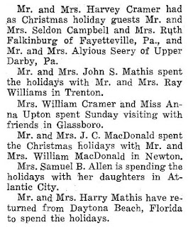Taking down the Christmas tree always makes us reflect back to Christmas pasts that were memorable for one reason or another. That tradition is one that is noteworthy to start here at the Blog, so let's go back to the New Gretna Christmas of 1936 as reflected in the December 31, 1936 edition of the Tuckerton Beacon